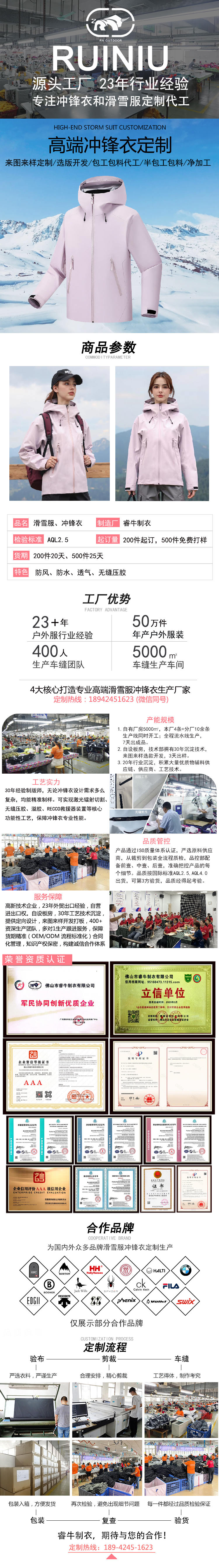 持續23年專注沖鋒衣、滑雪服定制加工廠家