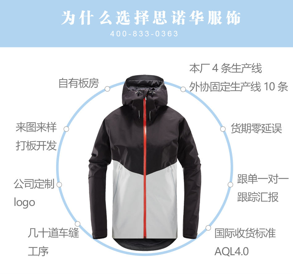 沖鋒衣加工廠家來(lái)圖來(lái)料單層沖鋒衣加工